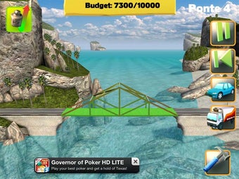 Una volta finito di costruire un ponte, puoi testarlo facendoci passare auto o camion. Se regge anche il passaggio di questi ultimi, Bridge Constructor ti premia con un bonus.